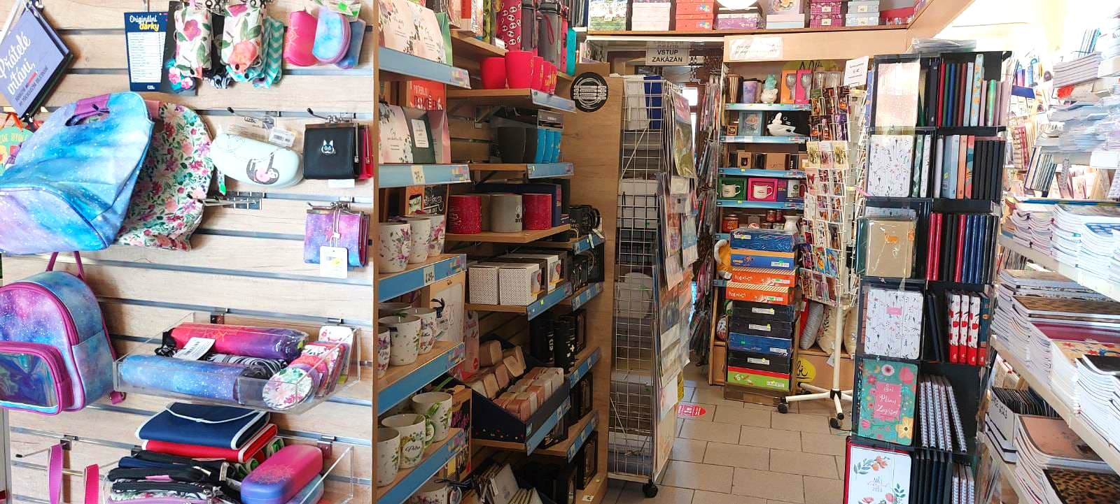 Prodej kancelářských, psacích, korekčních, rýsovacích, lepicích a školních potřeb. Velký výběr aktovek a školních batohů, blahopřání a pohlednic, fotoalba všech velikostí a typů. Široká nabídka dárků a knih. Navíc zde provádí kroužkovou vazbu nebo třeba balení dárků.